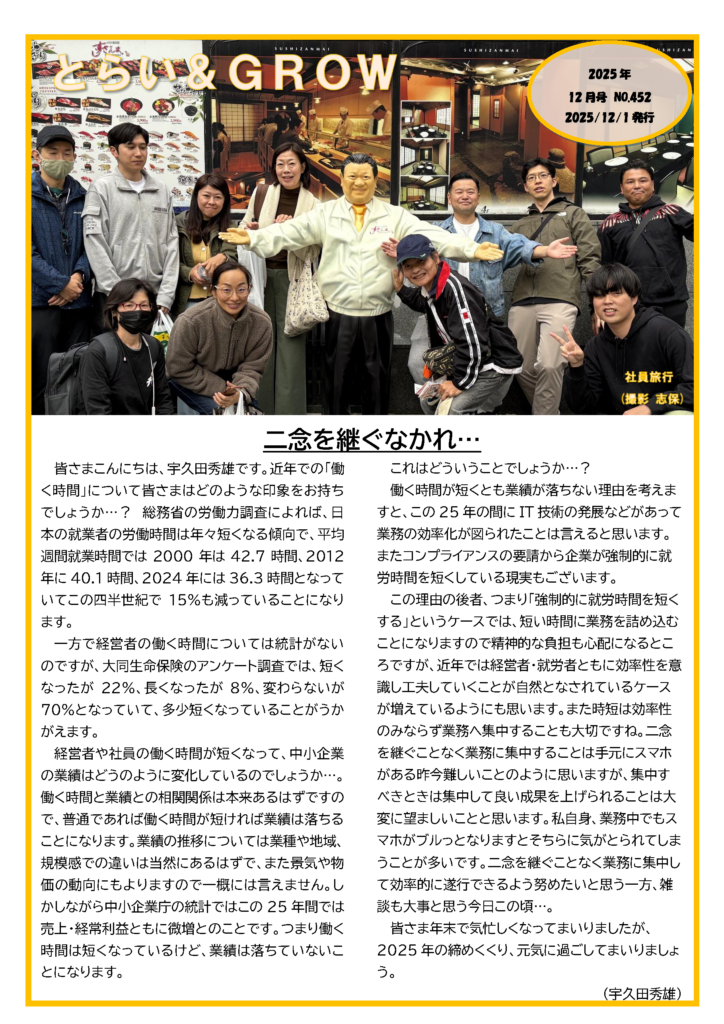 宇久田税理士事務所発行の事務所通信 とらい&GROW452号(2025年12月)