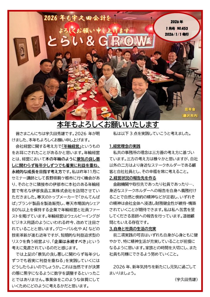 宇久田税理士事務所発行の事務所通信 とらい&GROW453号(2026年1月)