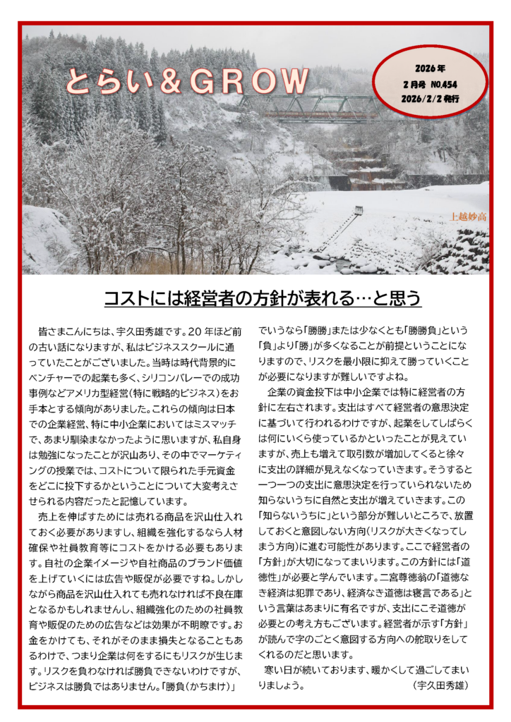 宇久田税理士事務所発行の事務所通信 とらい&GROW454号(2026年2月)